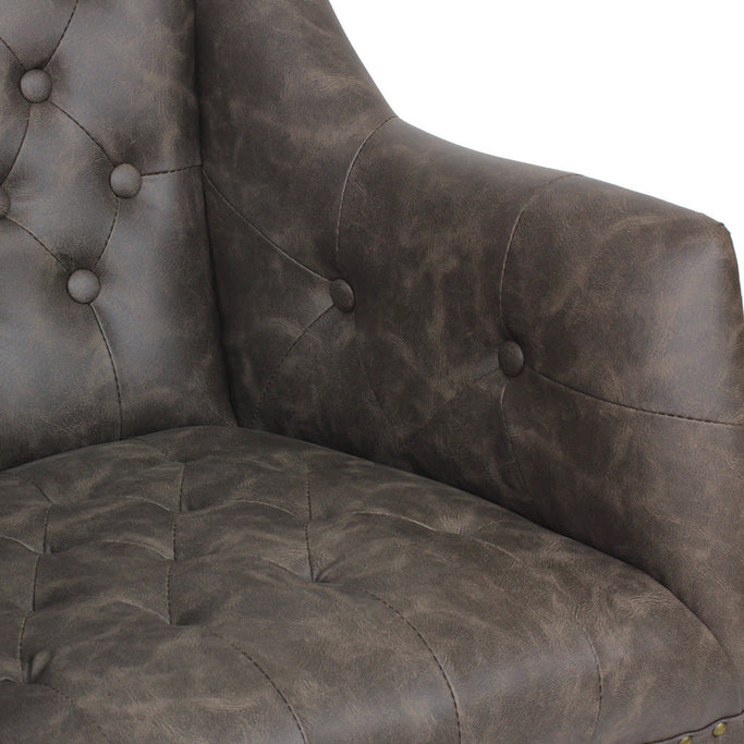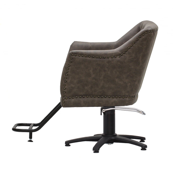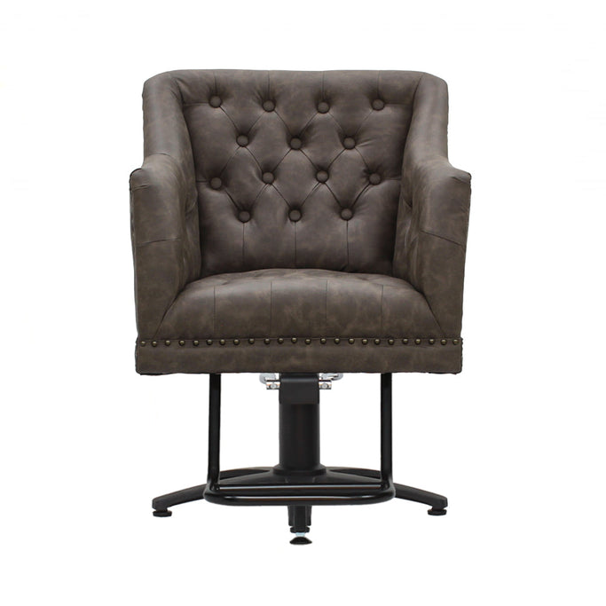 英国の伝統あるクラシック家具をオマージュ。施術者に配慮した大きな曲線状のフォルムのシートが魅力的なスタイリングチェア。マットな質感でダメージ加工を施したレザーを用い布団張りボタンで設え、深みのある陰影を演出。クラシカルな空間からインダストリアルな空間まで対応できるオーセンティックデザインのチェア。