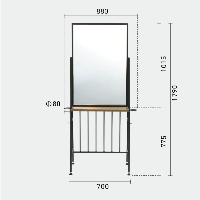天板の下の脚部分は、細身のパイプを組み合わせたデザインで、対面ドレッサー仕様での足元空間のパーティションの役割も担っています。広い空間に設置しても絵になるドレッサーです。