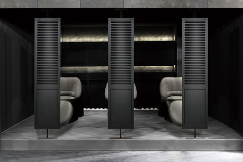 オプション金具を使うことで簡単にプライベートスペースを確保できるマテリのスリムパーテーション。