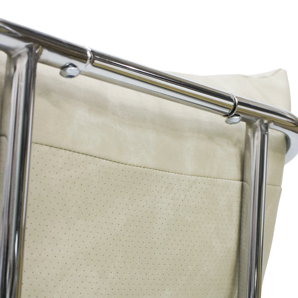 細身のパイプでありながら周囲をぐるりとカーブさせたアームレストは、肘を安心してあずけられる設計。大きい人もゆったりと座れる幅感でリュクスな時間に貢献します。