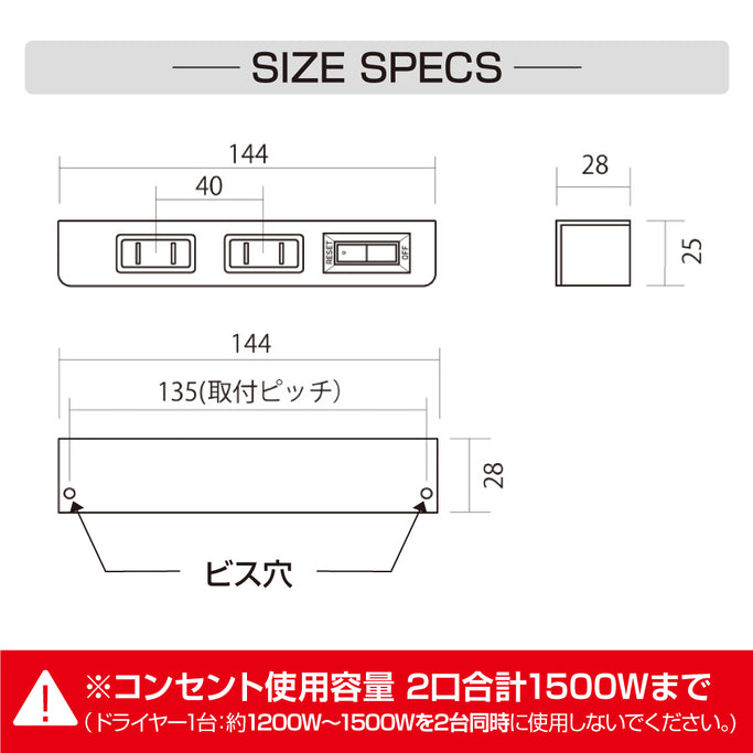 定格出力 / 電源タップAC15A / 100V 合計1500W