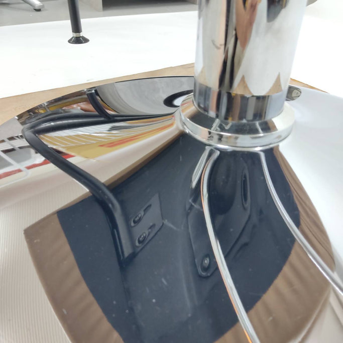 - W630 / D610 (ステップ込920) / 背凭H830~950 シートH470~590 / ベースφ550