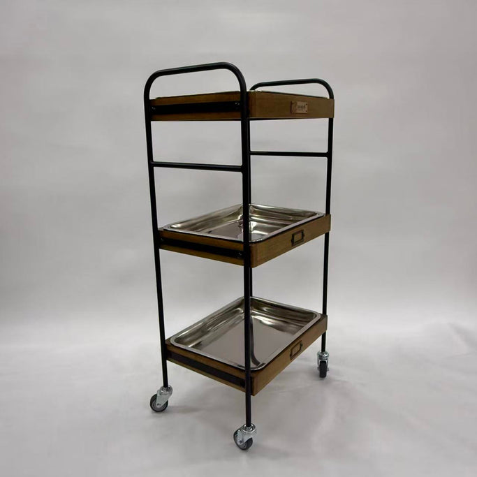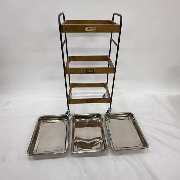 商品詳細 3段ウッドワゴンステンレストレイ3枚