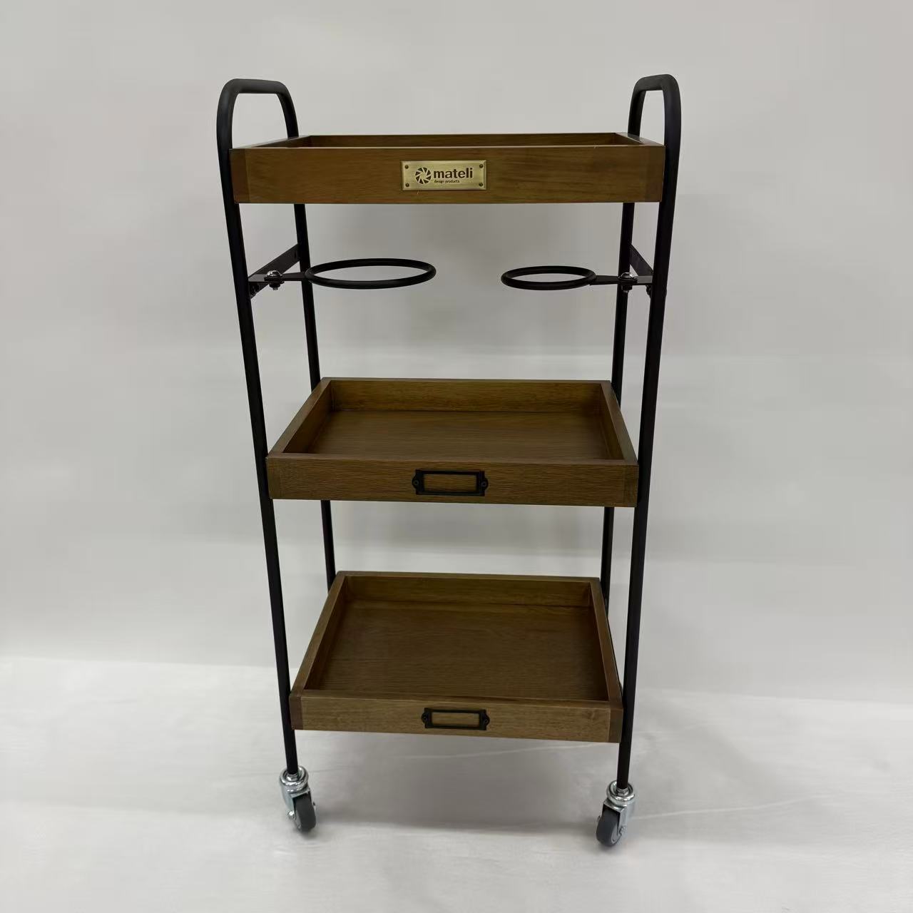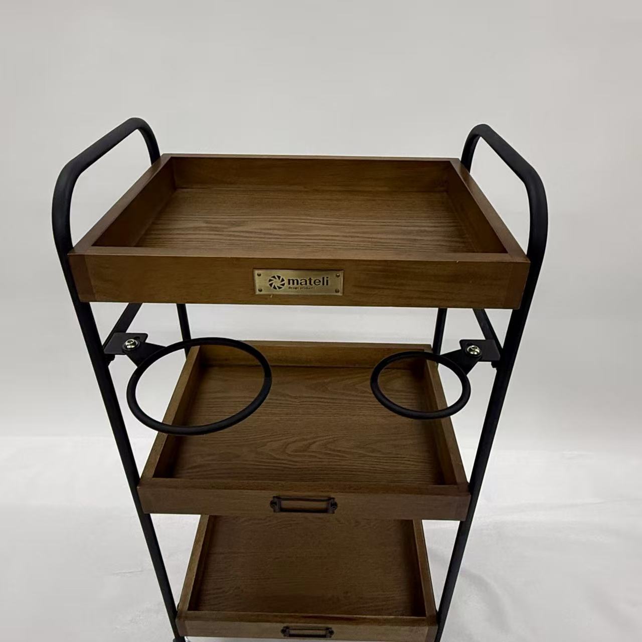 アウトレット 3段ウッドワゴン ステンレストレイ無し キャスター付き(BR)【完成品出荷】OL2129 通常価格¥16,280