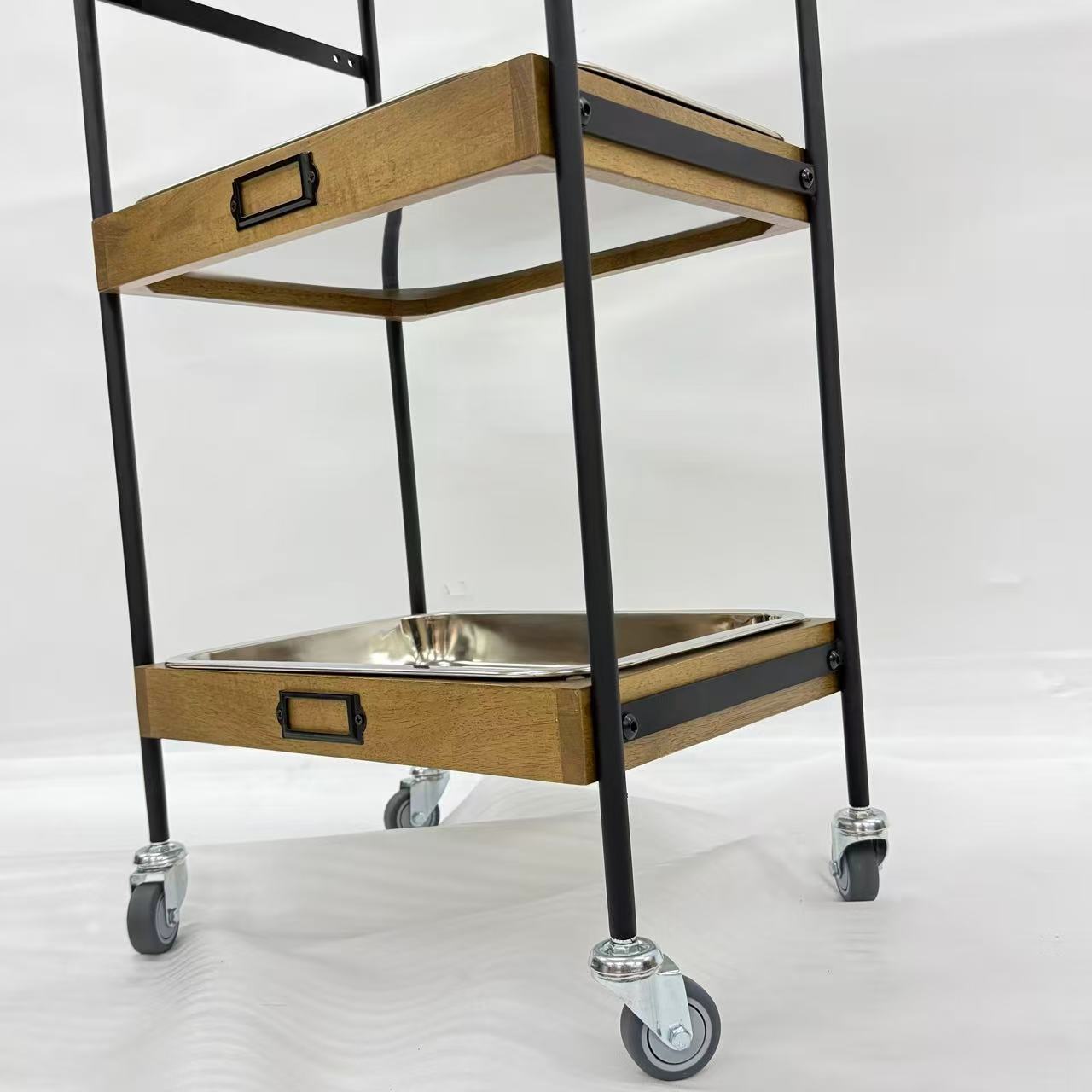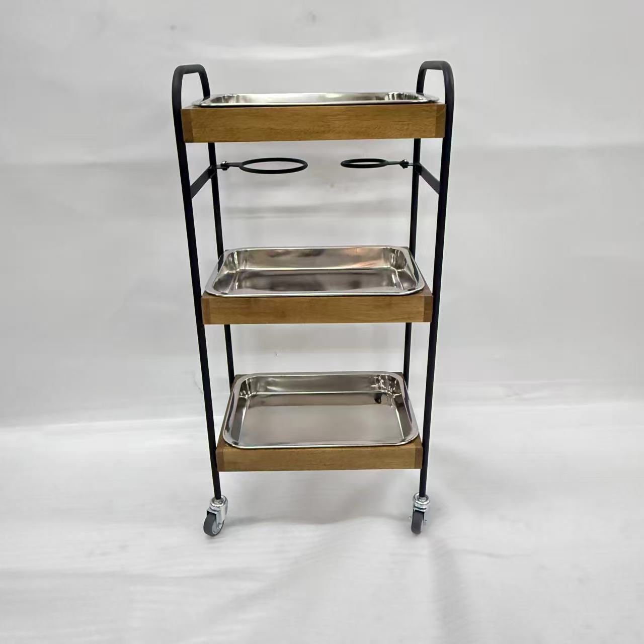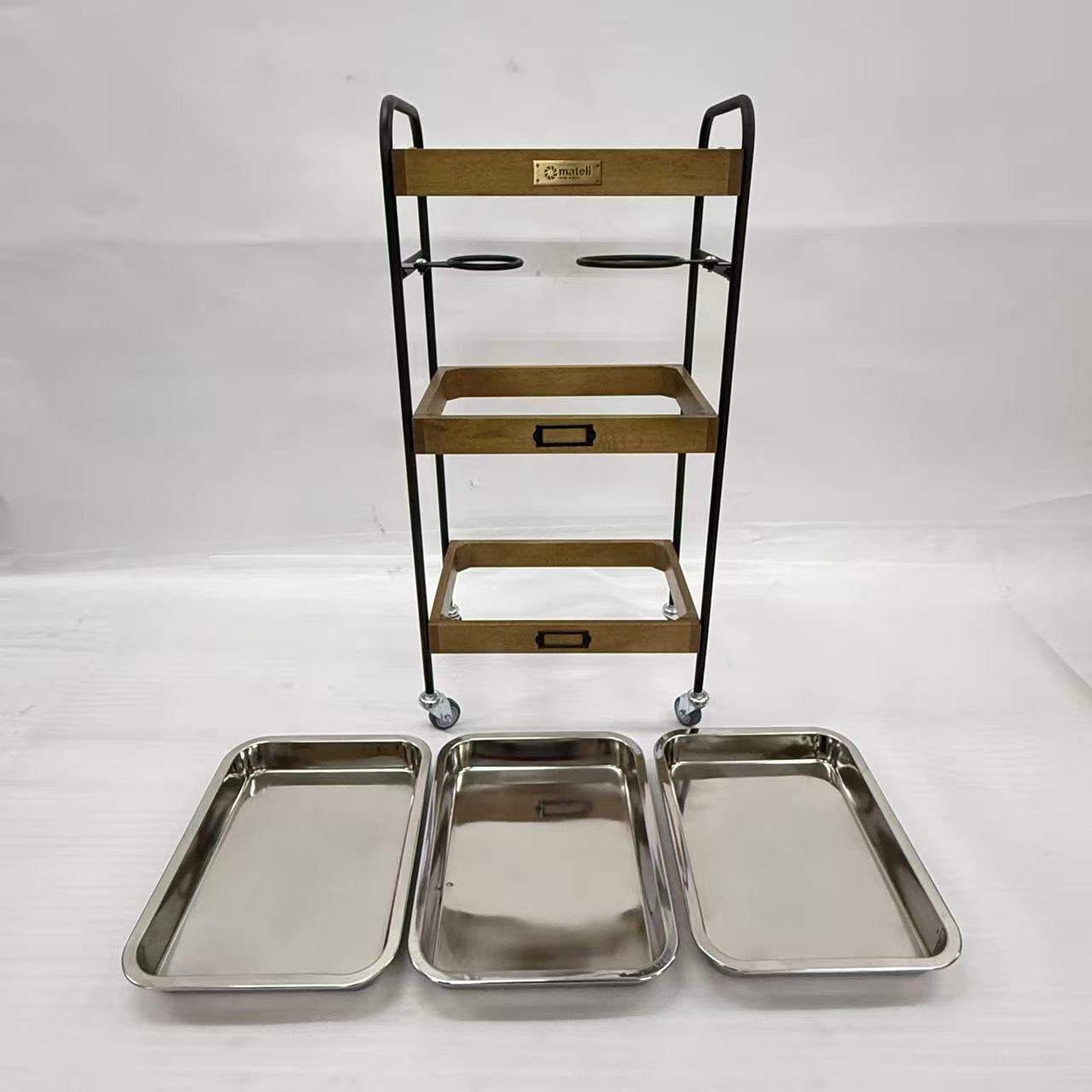 商品詳細 3段ウッドワゴンステンレストレイ3枚