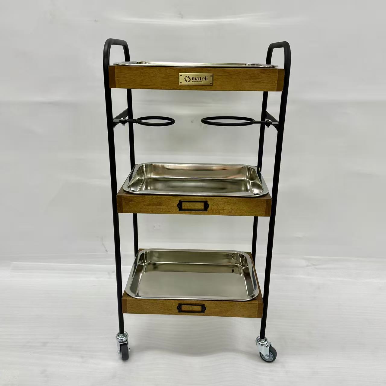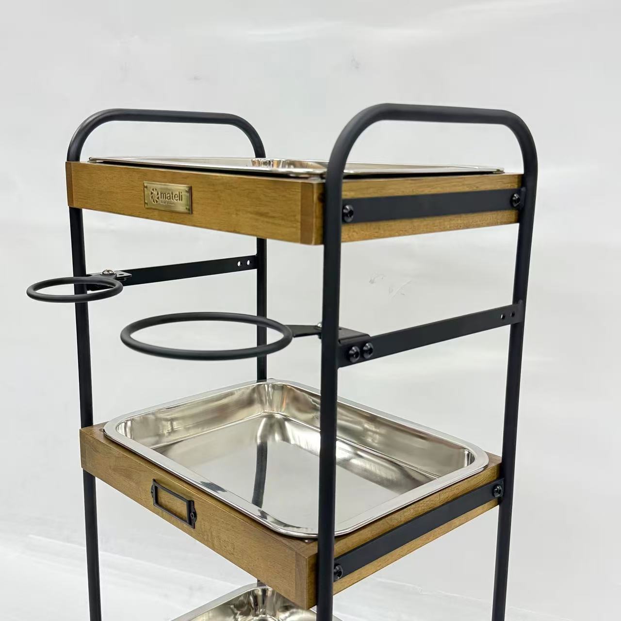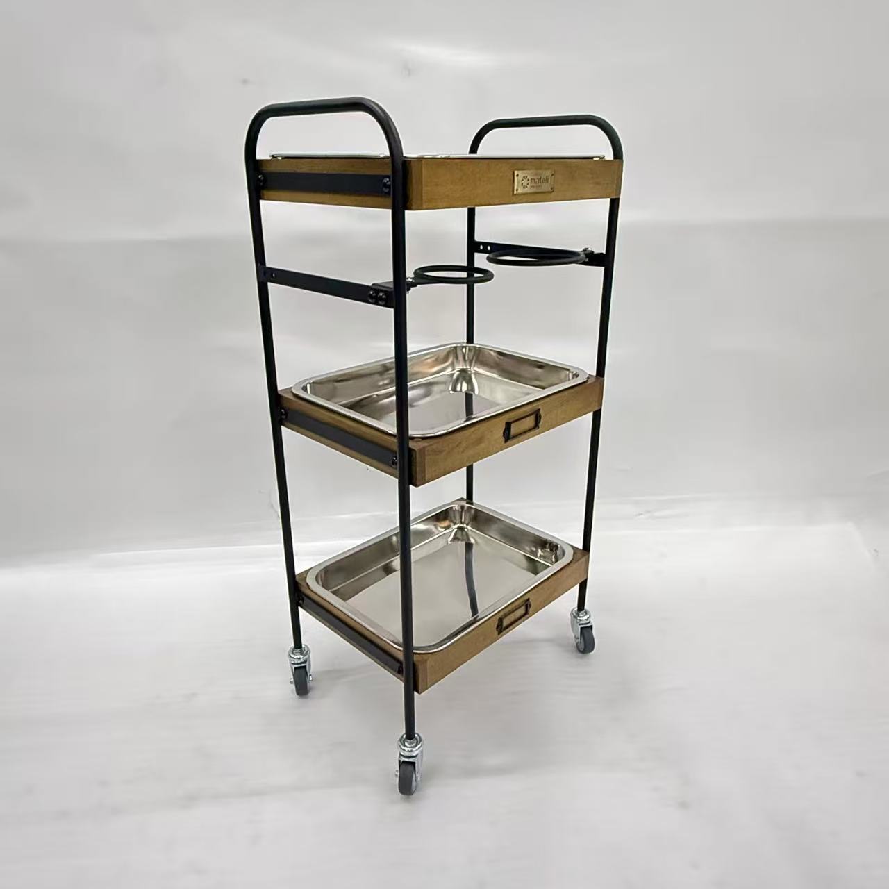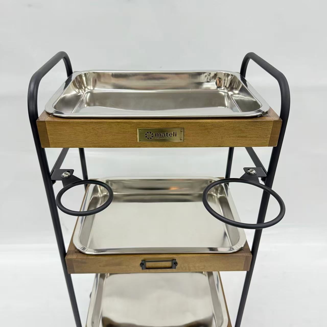 商品詳細 3段ウッドワゴンステンレストレイ3枚