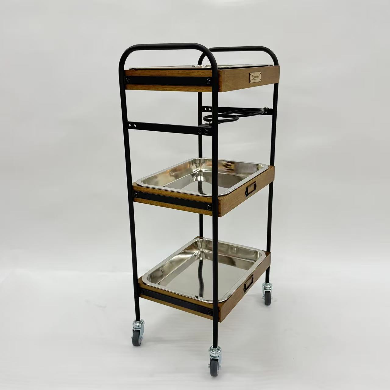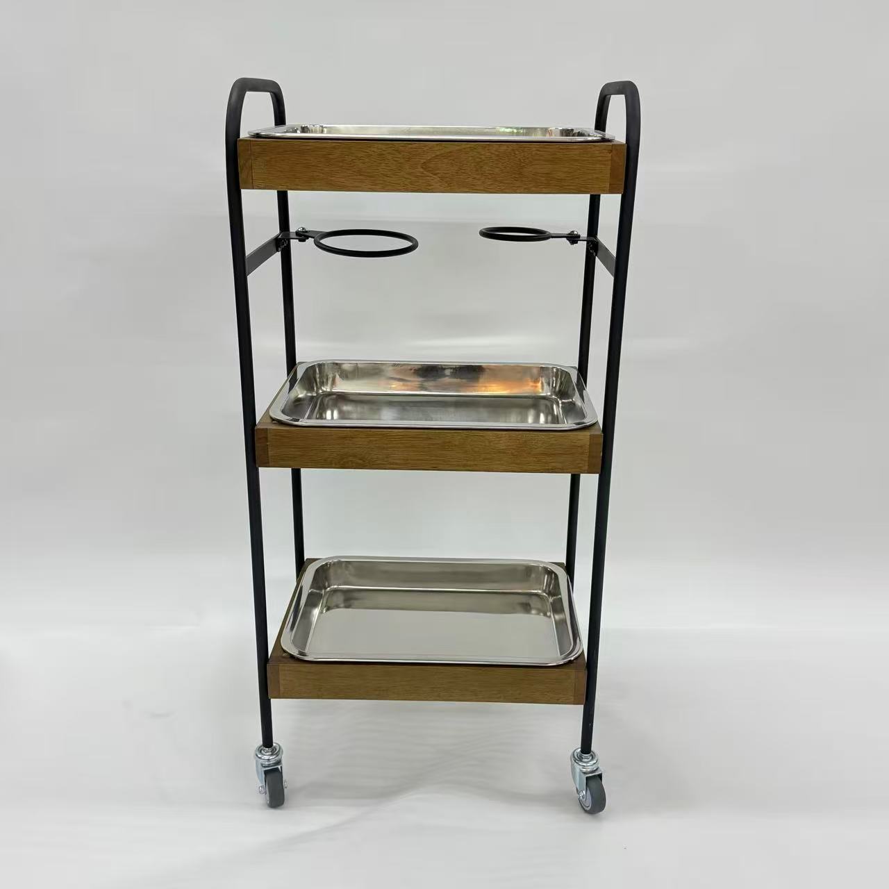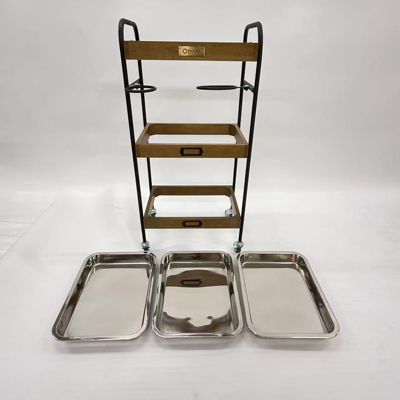 商品詳細 3段ウッドワゴンステンレストレイ3枚