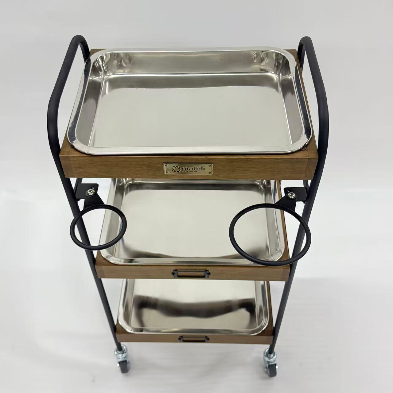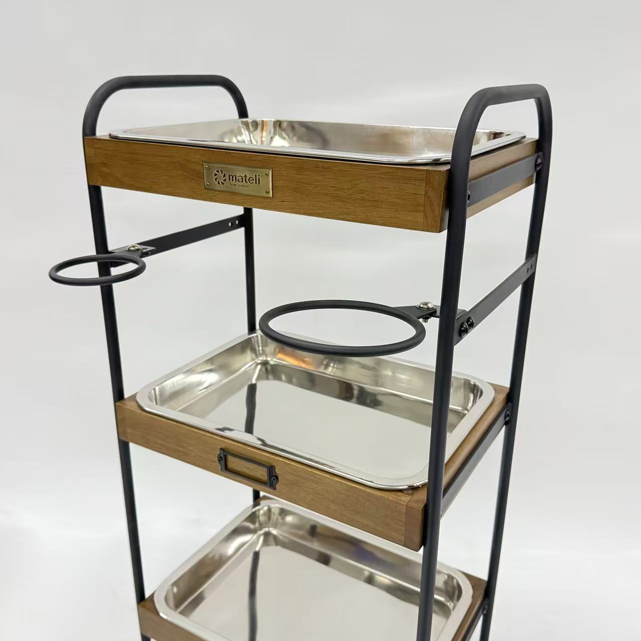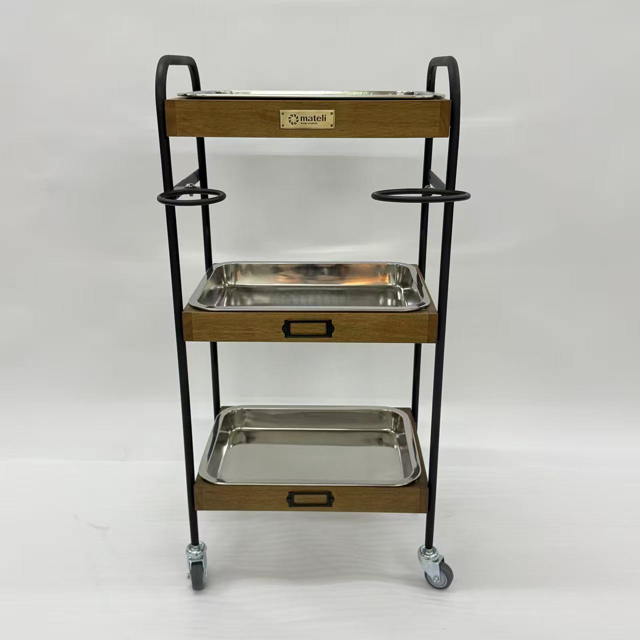 商品詳細 3段ウッドワゴンステンレストレイ3枚