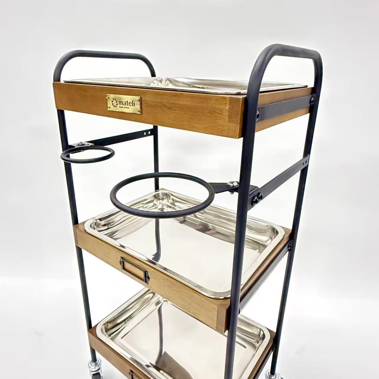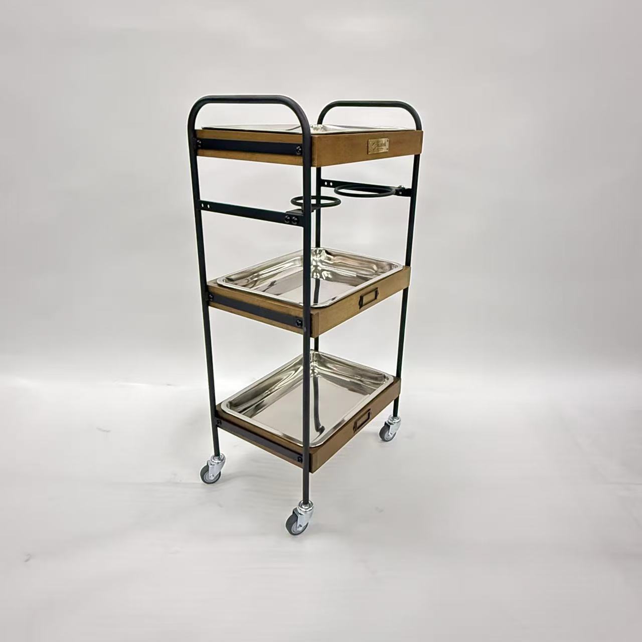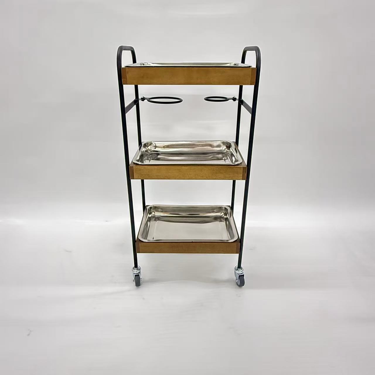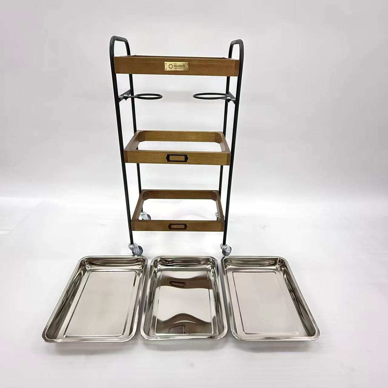 商品詳細 3段ウッドワゴンステンレストレイ3枚