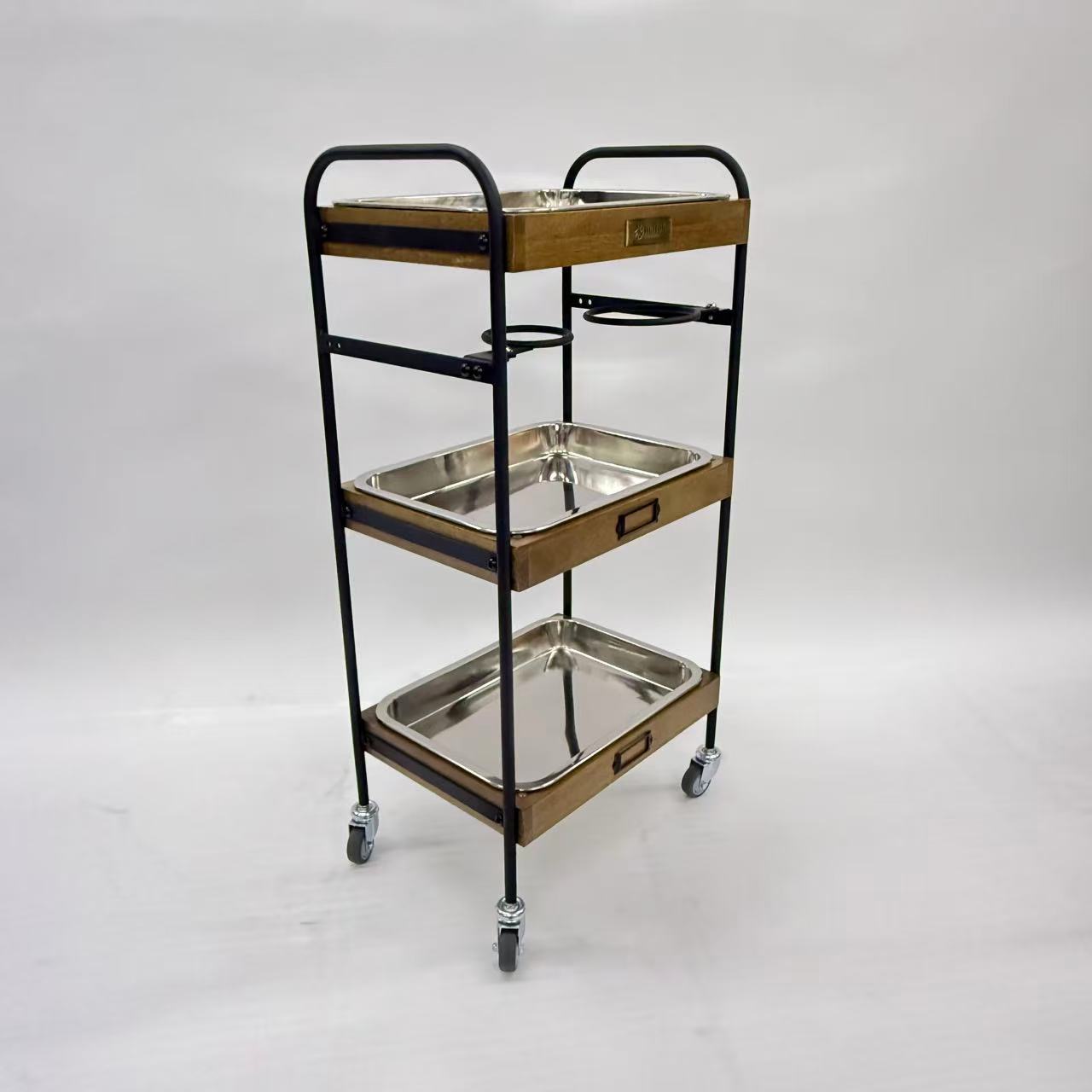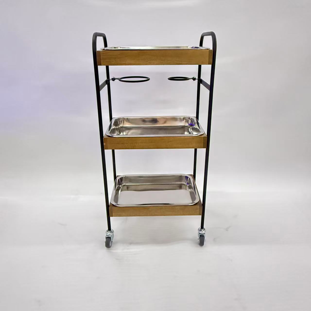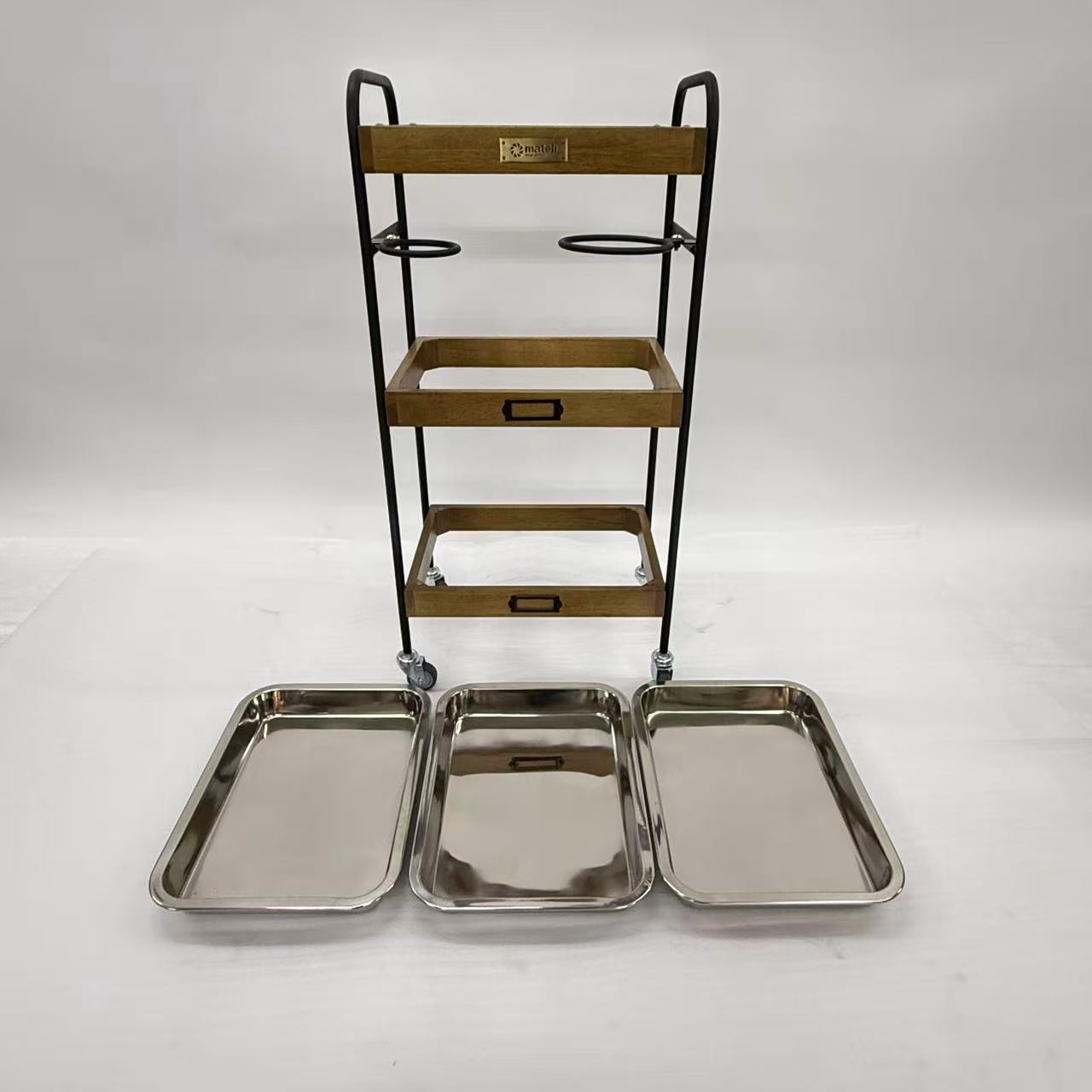 商品詳細 3段ウッドワゴンステンレストレイ3枚