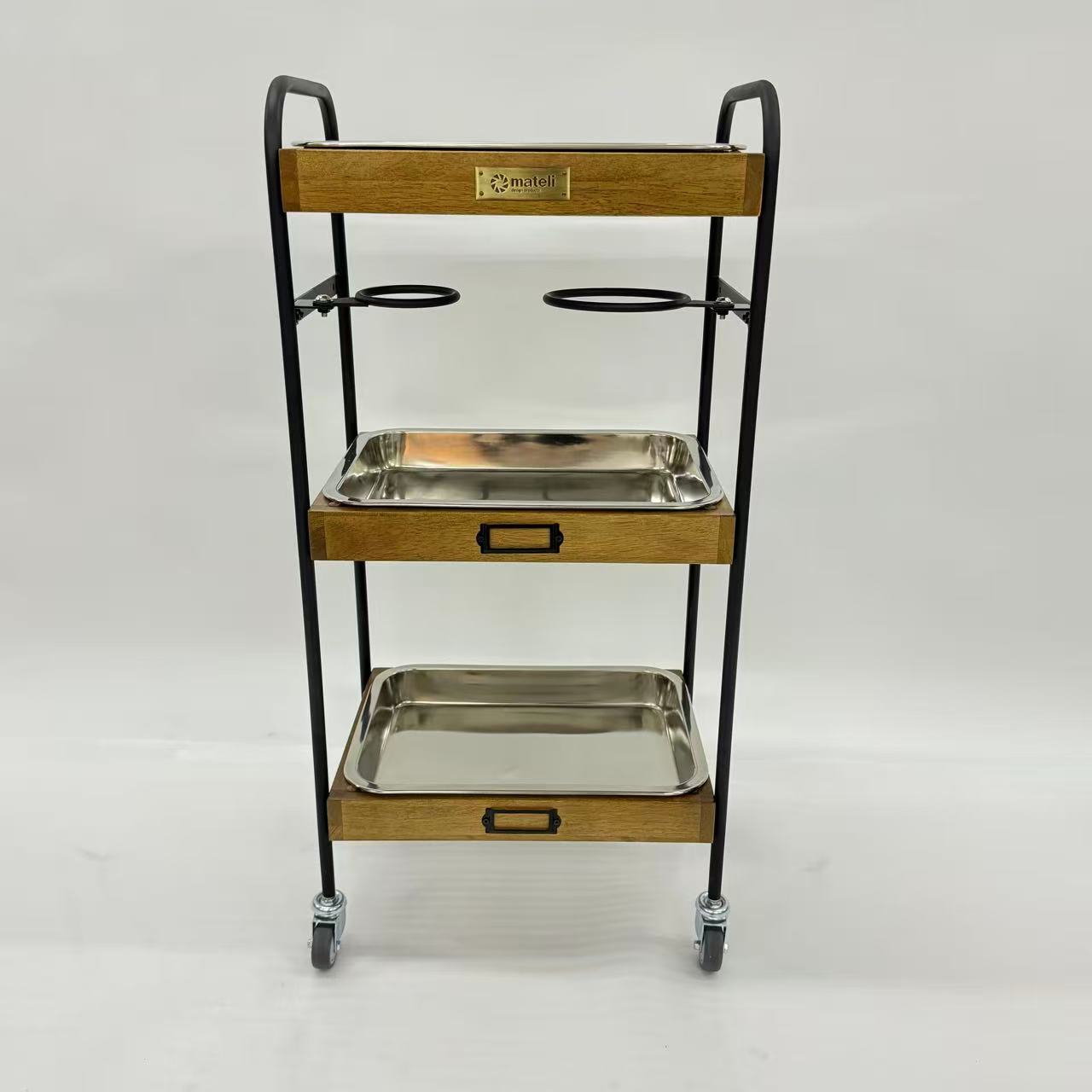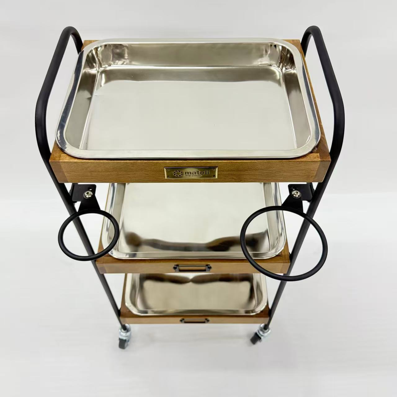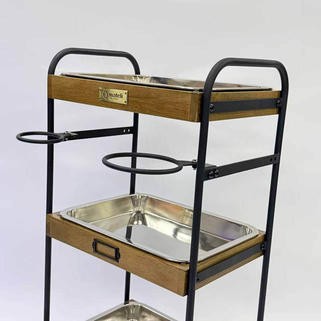 商品詳細 3段ウッドワゴンステンレストレイ3枚