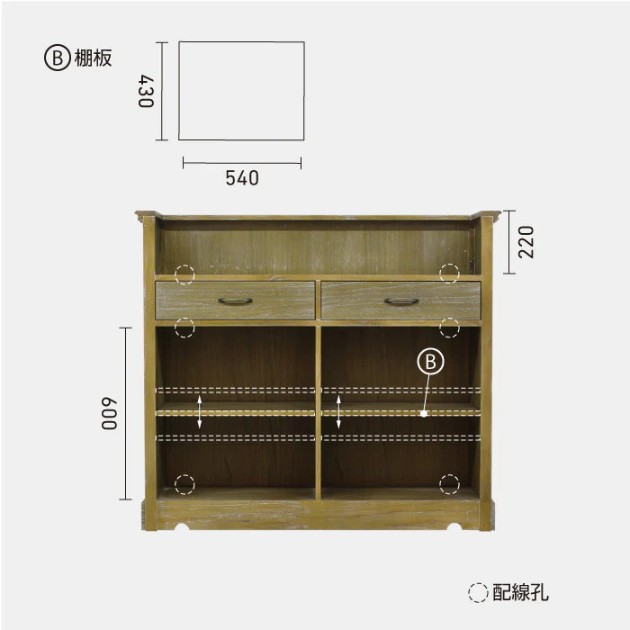 棚受けに配線ができる配線孔