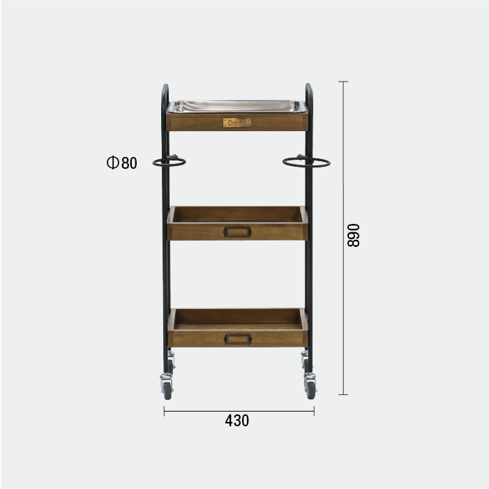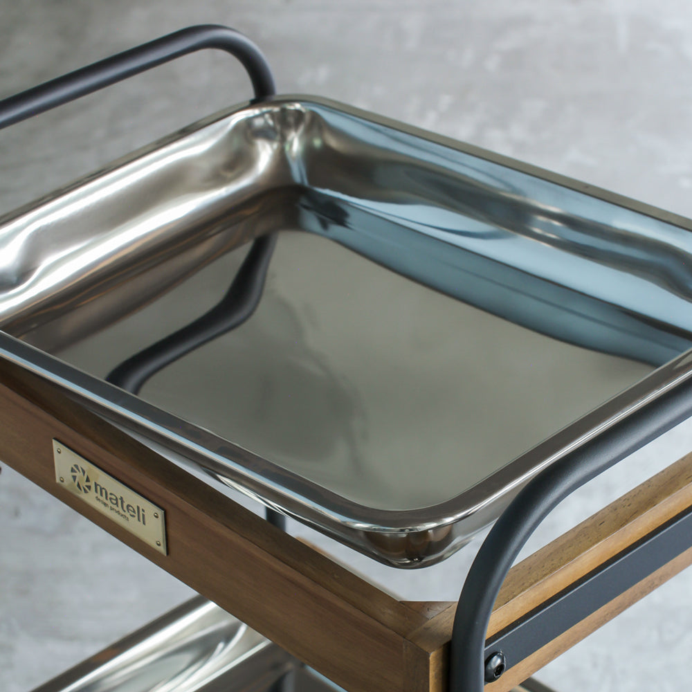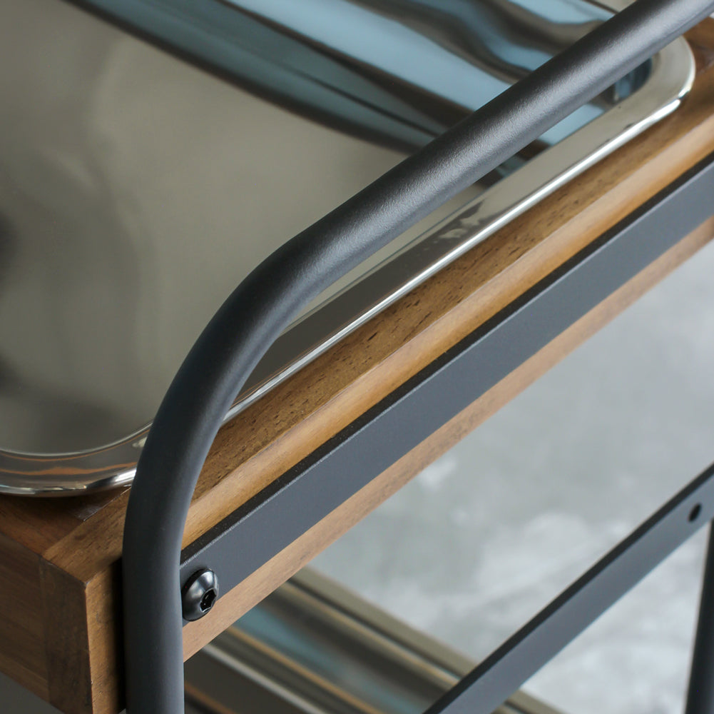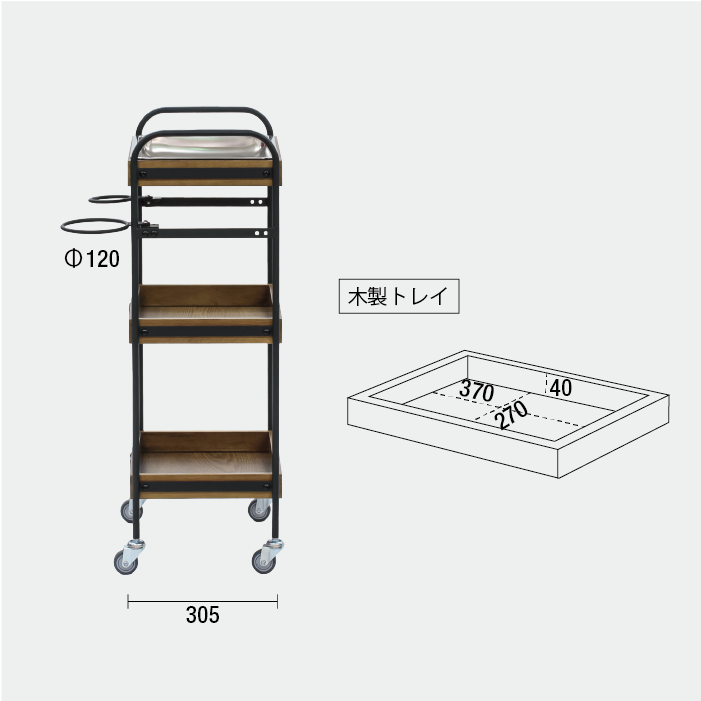 3段ウッドワゴン/ステンレストレイ1枚 BR