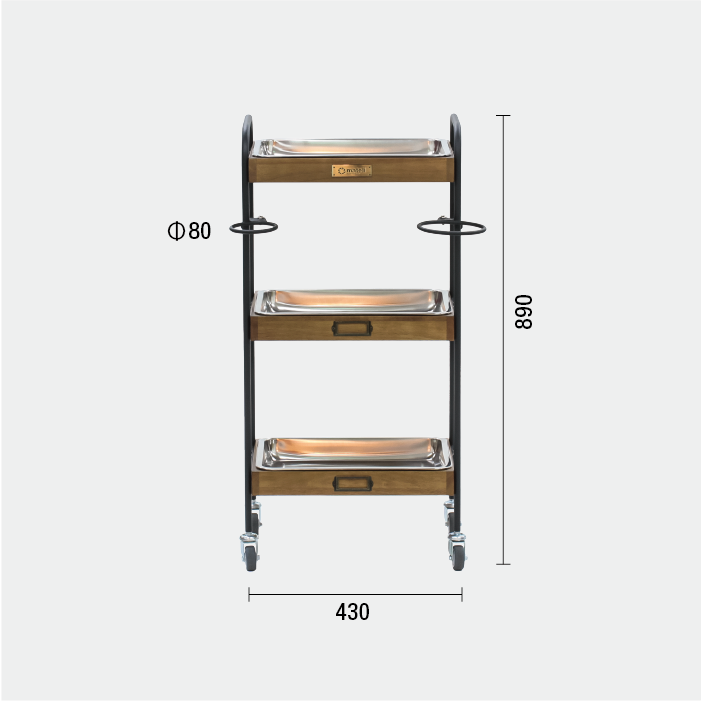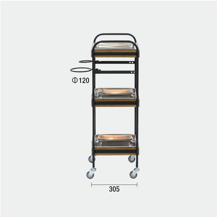 3段ウッドワゴン/ステンレストレイ3枚 GY